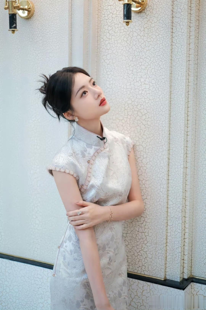 任敏穿蕾丝刺绣旗袍,那模样真是婀娜甜美。之前《群星闪耀时》新浪扫楼活动,她一身精致旗袍亮相,长发及腰,和穿暖色系西装三件套的李现站在一起,CP感爆棚。