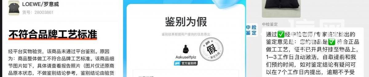 在社交平台上,也有网友反映过同一件商品在不同平台被鉴定出不同结果,甚至有的商品在买入时鉴定为真,再转手卖出时就变成了假货。部分网友提出质疑:“如果鉴定结果都不具备法律效力,我们为什么要花钱花时间去鉴定?”“不同平台给出的鉴定结果不一样,是商品真的有问题,还是不同平台有不一样的标准?”