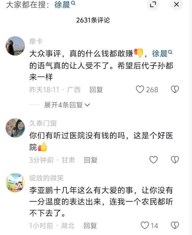 但李亚鹏回应再婚问题没多久,又发视频坦陈自己的公益医院做不下去了,反而迎来了风评的彻底反转。